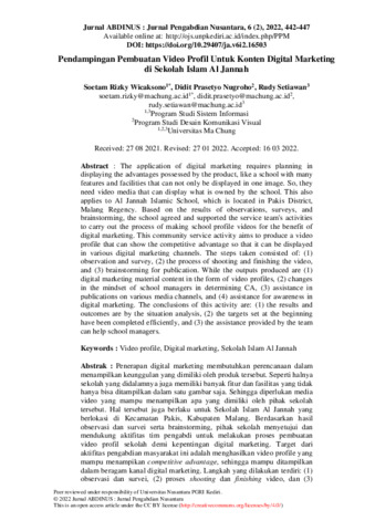 | Uncontrolled Keywords: | Video profil, Digital marketing, Sekolah Islam Al Jannah |