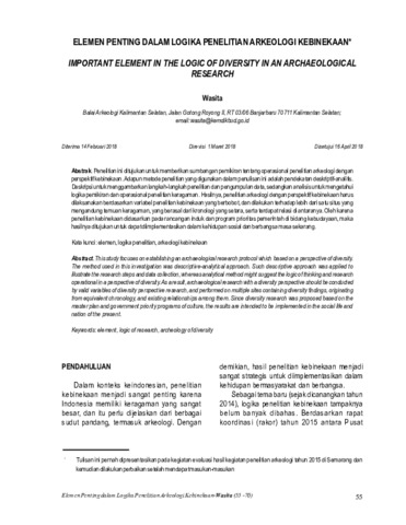 Wasita (2018) Elemen penting dalam logika penelitian arkeologi kebinekaan. Naditira Widya, 12 (1): 4. pp. 55-70. ISSN 1410-0932