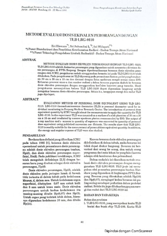 Eri, Hiswara and Sri, Subandini L. and Sri, Widayati (1995) Metode evaluasi dosis ekivalen perorangan dengan TLD LBG-0110. In: Proceedings Seminar Sains dan Teknologi Nuklir PPTN-BATAN, 21-22 Maret 1995, Bandung.