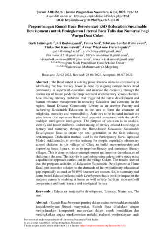 | Uncontrolled Keywords: | Baca-tulis, Education sustainable development, Literasi, Numerasi, Rumah baca |