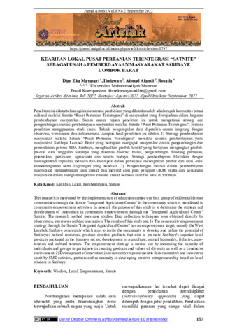 Dian, Eka Mayasari and Ilmiawan, Ilmiawan and Ahmad, Afandi (2022) Kearifan lokal pusat pertanian terintegrasi “satnite” sebagai usaha pemberdayaan masyarakat saribaye Lombok Barat. Jurnal Artefak, 9 (2). pp. 157-164. ISSN 2355-5726