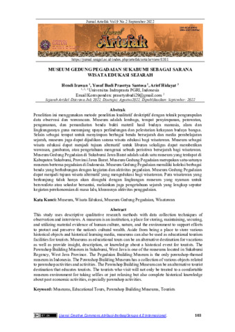 Hendi, Irawan and Yusuf, Budi Prasetya Santosa and Arief, Hidayat (2022) Museum gedung pegadaian sukabumi sebagai sarana wisata edukasi sejarah. Jurnal Artefak, 9 (2). pp. 103-112. ISSN 2355-5726