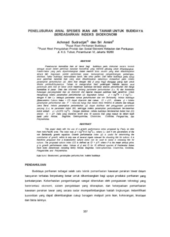 Penelusuran komoditas ikan air tawar bagi budidaya perlu dilakukan secara terarah sebagai acuan dalam pemilihan kandidat komoditas yang memiliki peluang untuk dikembangkan Faktor-faktor yang perlu dipertimbangkan dalam memilih biota akuatik yang akan dibudidayakan antara lain kegunaan. jumlah permintaan pasar, kemungkinan pengembangan, persaingan, distribusi, faktor budidaya, ketersediaan benih, dan umur panen. Dari faktor budidaya pada tahap awal pemilihan kandidat ikan yang akan dibudidayakan sebaiknya didasarkan pada indeks penampilan pertumbuhan (d'). Jenis ikan dengan nilai ' yang tinggi dianggap paling baik untuk dicoba pembudidayaannya. Tulisan ini menguraikan hasil penerapan metode seleksi awal penentuan jenis ikan air tawar untuk keperluan budidaya berdasar analisis pertumbuhan dan harga komoditas di pasar. Data dan informasi tentang parameter pertumbuhan (Lr, K) dan konstanta hubungan panjang-bobot ikan (a) diperoleh dari laporan maupun publikasi hasil penelitian.