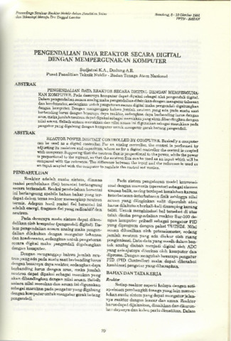 Sudjatmi, K. A. and Dudung, A. R. (1991) Pengendalian daya reaktor secara digital dengan mempergunakan komputer. In: Seminar Reaktor Nuklir dalam Penelitian Sains dan Teknologi Menuju Era Tinggal Landas, 8-10 Oktober 1991, Bandung.