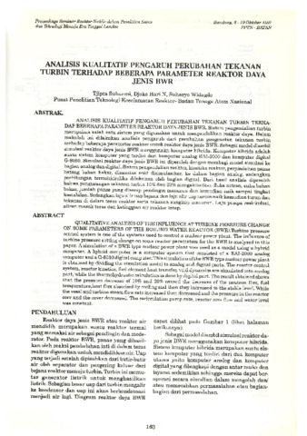 Tjipta, Suhaemi and Djoko, Hari N and Suharyo, Widagdo (1991) Analisis kualitatif pengaruh perubahan tekanan turbin terhadap beberapa parameter reaktor daya jenis BWR. In: Seminar Reaktor Nuklir dalam Penelitian Sains dan Teknologi Menuju Era Tinggal Landas, 8-10 Oktober 1991, Bandung.