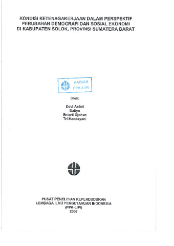 Devi, Asiati and Daliyo, Daliyo and Eniarti, Djohan and Tri, Handayani (2006) Kondisi ketenagakerjaan dalam perspektif perubahan demografi dan sosial ekonomi di Kabupaten Solok, Provinsi Sumatera Barat. Project Report. Lembaga Ilmu Pengetahuan Indonesia, Jakarta.