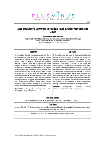 Muhammad, Haikal Abror (2022) Self-regulated learning terhadap hasil belajar matematika siswa. Plusminus: Jurnal Pendidikan Matematika, 2 (2): 6. pp. 233-242. ISSN 2798-2904