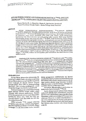Nanny, Kartini H. and A., Hanafiah and Mimin, R. and Epi, Isabela (1995) Studi perbandingan farmakokinetika ⁹⁹ᵐTc-inulin dengan ⁹⁹ᵐTc –DTPA (dietilen triamin penta asetat). In: Proceedings Seminar Sains dan Teknologi Nuklir PPTN-BATAN, 21-22 Maret 1995, Bandung.