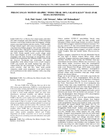 Ferly, Putri Lianto and Adit, Nirwana and Sultan, Arif Rahmadianto (2022) Perancangan motion graphic “fomo tidak 100% salah kalian” bagi anak muda di Indonesia. Sainsbertek Jurnal Ilmiah Sains & Teknologi, 3 (1): 13. pp. 169-185. ISSN 2797-1244