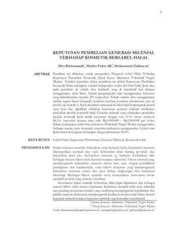 Dita Rismananda and Marlya Fatira AK and Muhammad Zuhirsyan (2021) Keputusan pembelian generasi milenial terhadap kosmetik berlabel halal. Majalah Iptek Politeknik Negeri Medan Polimedia, 24 (1): 1. pp. 1-12. ISSN 1410-7422
