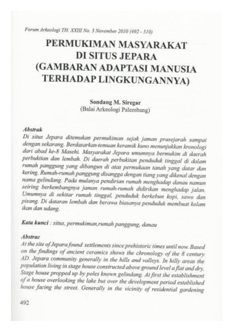 Sondang, M. Siregar (2010) Permukiman masyarakat di situs Jepara (gambaran adaptasi manusia terhadap lingkungannya). Forum Arkeologi, 23 (3): 4. pp. 492-510. ISSN 0854-3232
