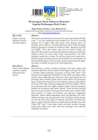 Dony, Waluya Firdaus and Lina, Rahmawati (2018) Perancangan sistem informasi akuntansi laporan perhitungan hasil usaha. @is The Best : Accounting Information Systems and Information Technology Business Enterprise, 3 (1): 2. pp. 236-248. ISSN 2252-9853