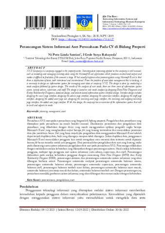 Ni, Putu Linda Santiari and I Gede, Surya Rahayuda (2022) Perancangan sistem informasi aset perusahaan pada CV di bidang properti. @is The Best : Accounting Information Systems and Information Technology Business Enterprise, 7 (1): 1. pp. 1-15. ISSN 2252-9853