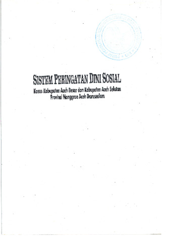Azis, Suganda (2008) Sistem peringatan dini sosial: kasus Kabupaten Aceh Besar dan Kabupaten Aceh Selatan, Provinsi Nanggroe Aceh Darussalam. LIPI Press, Jakarta. ISBN 978-979-799-300-9