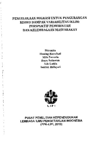 Fitranita, Fitranita and Haning, Romdiati and Mita, Noveria and Bayu, Setiawan and Ade, Latifa and Inayah, Hidayati (2013) Pengelolaan migrasi untuk pengurangan risiko dampak variabilitas iklim: perspektif pemerintah dan kelembagaan masyarakat. Project Report. Pusat Penelitian Kependudukan-LIPI, Jakarta.