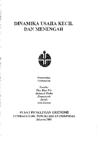 Thee Kian, Wie and Mahmud, Thoha and Firmansyah, Firmansyah and Zarida, Zarida and Jiwa, Sarana (2001) Dinamika usaha kecil dan menengah. Project Report. Pusat Penelitian Ekonomi-LIPI, Jakarta.