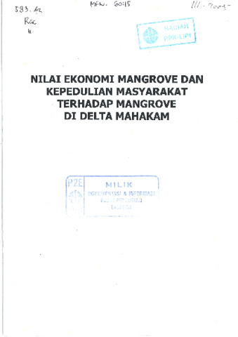 Laksmi, Rachmawati and Fitranita, Fitranita and Dewi, Harfina and Laila, Nagib and Deny, Hidayati and Nawawi, Nawawi and Brilian, Nugroho (2004) Nilai ekonomi mangrove dan kepedulian masyarakat terhadap mangrove di Delta Mahakam. Project Report. Pusat Penelitian Kependudukan-LIPI, Jakarta.