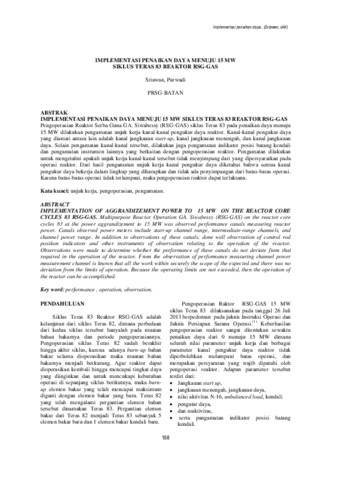 Sriawan, Sriawan and Purwadi, Purwadi (2013) IMPLEMENTASI PENAIKAN DAYA MENUJU 15 MW SIKLUS TERAS 83 REAKTOR RSG-GAS. PROSIDING SEMINAR NASIONAL TEKNOLOGI DAN APLIKASI REAKTOR NUKLIR. pp. 168-176. ISSN 978-979-17109-8-5