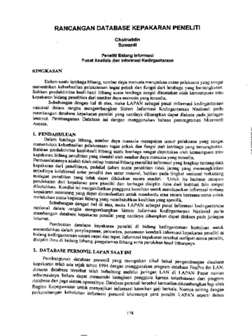 Dalam suatu lembaga litbang, sumber daya manusia merupakan unsur pelaksana yang sangat menentukan keberhasilan pelaksanaan tugas pokok dan fungsi dari lembaga yang bersangkutan. Bahkan produktivitas hasil-hasil litbang suatu lembaga sangat ditentukan oleh kemampuan atau kepakaran bidang penelitian dari sumber daya manusia yang tersedia. Sehubungan dengan hal di atas, maka LAPAN sebagai pusat informasi kedirgantaraan nasional dalam rangka mengembangkan Sistem Informasi Kcdirgantaraan Nasional perlu membangun database kepakaran peneliti yang nantinya diharapkan dapat diakses pada jaringan Internet. Pembangunan Database ini dengan menggunakan bahasa pemrograman Microsoft Access.
