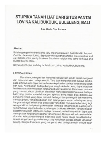 A.A. Gede, Oka Astawa (2006) Stupika tanah liat dari situs pantai Lovina Kalibukbuk, Buleleng, Bali. Forum Arkeologi, 19 (2): 2. pp. 11-24. ISSN 0854-3232