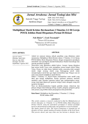 Noh, Ruku and Ucok, Trosmada (2022) Multiplikasi murid Kristus berdasarkan 2 Timotius 2:2 di Gereja POUK Ichthus Bumi Dirgantara Permai Di Bekasi. Jurnal Arrabona, 5 (1): 7. pp. 110-128. ISSN 2622-5433