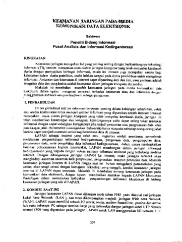 Sakiwan, Sakiwan (2001) Keamanan jaringan pada media komunikasi data elektronik. In: Kedirgantaraan : kajian kebijakan, hukum dan informasi. LAPAN, Jakarta, pp. 207-210. ISBN 979-8554-48-5