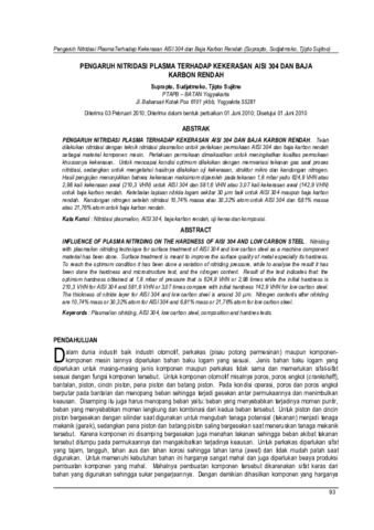 PENGARUH NITRIDASI PLASMA TERHADAP KEKERASAN AISI 304 DAN BAJA KARBON RENDAH. Telah