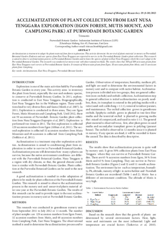 East Nusa Tenggara can’t survive at Purwodadi Botanic Garden. It consists of 60 accession plants from Egon, 20 accession plants from Mutis, and 18 accession