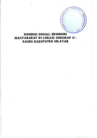 Suko, Bandiyono and Ngadi, Ngadi and Masyhuri, Imron and Toni, Soetopo (2008) Kondisi sosial-ekonomi masyarakat di lokasi COREMAP II: kasus Kabupaten Selayar. LIPI Press, Jakarta. ISBN 978-979-799-297-2