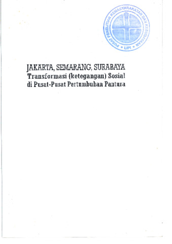 Riwanto Tirtosudarmo and Anas Saidi and M. Bashori Imron and Ana Windarsih and Khoirul Muqtafa and Syarfina Mahya Nadila (2011) Jakarta, Semarang, Surabaya: Transformasi (ketegangan) sosial di pusat-pusat pertumbuhan Pantura. PT. Gading Inti Prima, Jakarta. ISBN 978-602-221-181-5