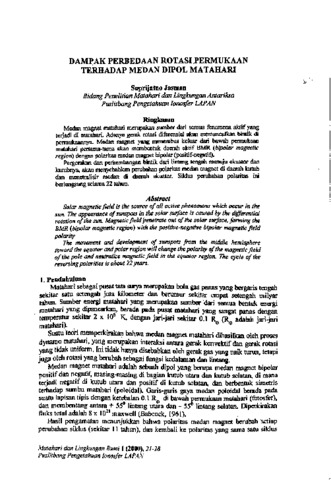 Suprijatno, Jasman (2000) Dampak perbedaan rotasi permukaan terhadap medan dipol matahari. Bunga Rampai : Matahari dan Lingkungan Bumi. pp. 21-28. ISSN 978-623-7102-02-1