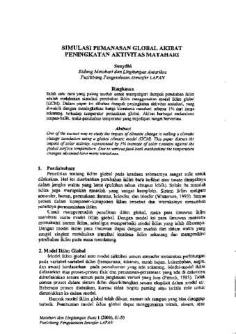 Suaydhi (2000) Simulasi pemanasan global akibat peningkatan aktivitas matahari. Bunga Rampai : Matahari dan Lingkungan Bumi. pp. 81-86. ISSN 978-623-7102-02-1