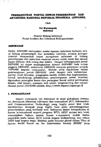 Tri Warningsih and Sakiwan (2008) Pembangunan portal Dewan Penerbangan Dan Antariksa Nasional Republik Indonesia (DEPANRI). In: Teknologi informasi dan komunikasi. Massma Sikumbang, Jakarta, pp. 102-115. ISBN 978-8554-81-7
