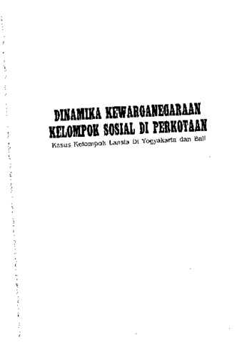 Suprihadi, Suprihadi and Dede, Wardiat and Nyayu, Fatimah and Rochmawati, Rochmawati and Sukri, Abdurachman (2014) Dinamika kewarganegaraan kelompok sosial di perkotaan: kasus kelompok lansia di Yogyakarta dan Bali. PT. Gading Inti Prima, Jakarta. ISBN 978-602-221-277-5
