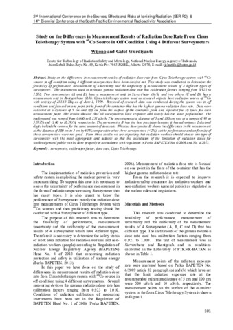 Wijono, Wijono and Gatot, Wurdiyanto (2016) Study on the Differences in Measurement Results of Radiation Dose Rate From Cirus Teletherapy System with 60Co Source in Off Condition Using 4 Different Surveymeters. 2nd International Conference on the Sources, Effects and Risks of Ionizing Radiation (SERIR2). pp. 101-105.