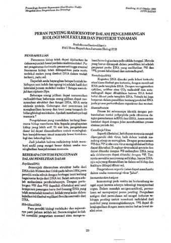 Sastrodiharjo Peran penting radioisotop dalam pengembangan biologi molekuler dan proteksi tanaman. Proceeding seminar seperempat abad reaktor nuklir mengabdi ilmu pengetahuan dan teknologi: 4. pp. 1-2.