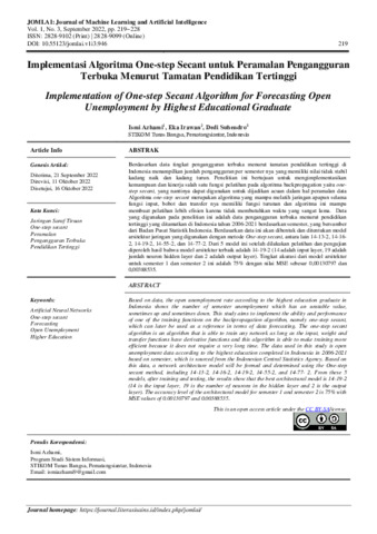 Ismi, Azhami and Eka, Irawan and Dedi, Suhendro (2022) Implementasi algoritma one-step secant untuk peramalan pengangguran terbuka menurut tamatan pendidikan tertinggi. Journal of Machine Learning and Artificial Intelligence, 1 (3): 5. pp. 219-228. ISSN 2828-9102