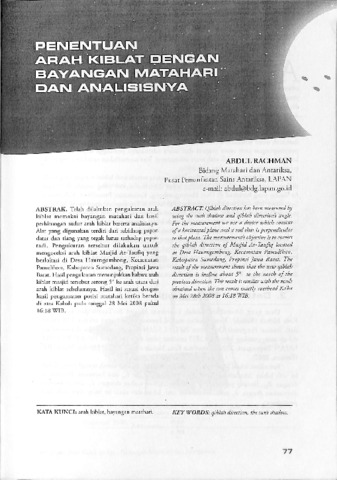 | Uncontrolled Keywords: | Arah kiblat, Bayangan matahari |