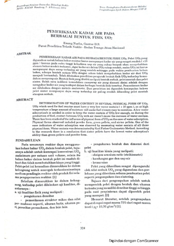 Enung, Nurlia and Guntur, D.S. (1994) Pemeriksaan kadar air pada berbagai bentuk fisik UO₂. In: Proceedings Seminar Sains dan Teknologi Nuklir PPTN-BATAN, 7-9 Februari 1994, Bandung.