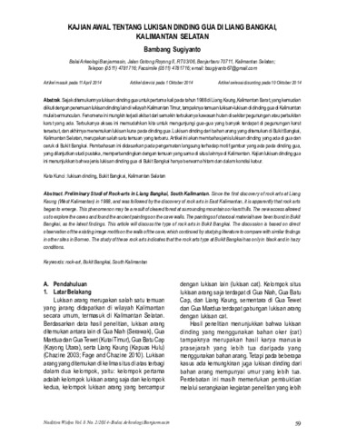 Bambang Sugiyanto (2014) Kajian awal tentang lukisan dinding gua di Liang Bangkai, Kalimantan Selatan. Naditira Widya, 8 (2): 1. pp. 59-68. ISSN 1410 - 0932