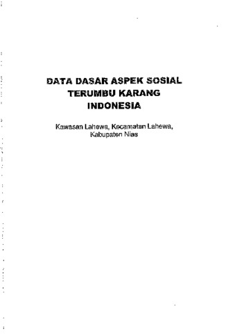 Eniarti Djohan and Rusli Cahyadi (2007) Data dasar aspek sosial terumbu karang Indonesia kawasan Lahewa, Kecamatan Lahewa, Kabupaten Nias. LIPI Press, Jakarta. ISBN 978-979-799-148-7