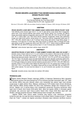 PROSES DESORPSI LOGAM BERAT PADA SEDIMEN SUNGAI DAERAH MURIA DENGAN PELARUT ASAM.
