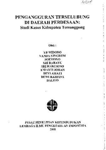 YB Widodo and Vanda Ningrum and Soemono and Sri Rahayu and Sri Hargiono and Eniarti Johan and Devi Asiati and Dewi Harfina and Daliyo (2008) Pengangguran terselubung di daerah perdesaan : Studi kasus Kabupaten Temanggung. Lembaga Ilmu Pengetahuan Indonesia, Jakarta.