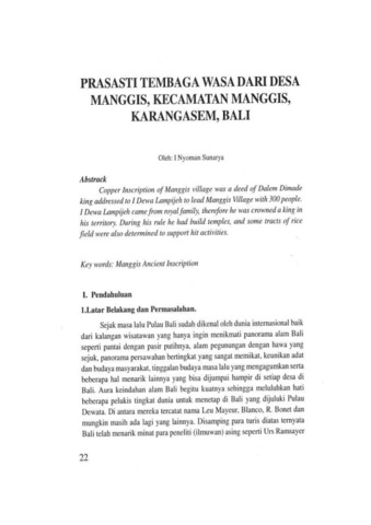 Prasasti tembaga wasa dari Desa Manggis yang akan dibicarakan pada kesempatan ini adalah merupakan prasasti yang dituliskan pada lempengan tembaga, dianugerahkan oleh Ida Dalem Dimade kepada I Dewa Lampijeh untuk memimpin desa Manggis. Dalem Dimade ini tercatat sebagai seorang raja yang pernah berkuasa di Bali pasca penaklukan Kerajaan Majapahit atas Kerajaan Bali, yang berkedudukan di Gelgel (Klungkung).