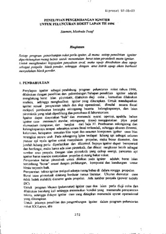 Sauman, Sauman and Mashuda, Yusuf (1997) Penelitian pengembangan igniter untuk peluncuran roket LAPAN th 1996. Proceeding Teknologi Dirgantara LAPAN Kiprosat’97: 21. pp. 252-258. ISSN 979/8554/18/3