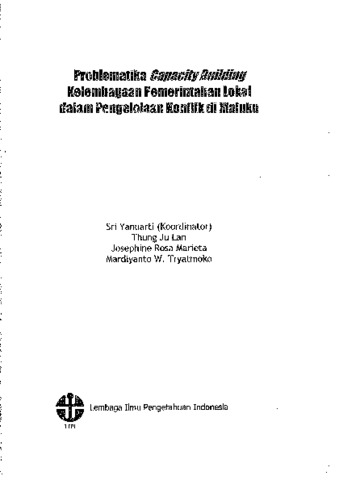 Sri, Yanuarti and Thung, Ju lan and Josephine Rosa, Marieta and Mardiyanto W., Tryatmoko (2006) Problematika capacity building kelembagaan pemerintahan lokal dalam pengelolaan konflik di Maluku. LIPI Press, Jakarta. ISBN 979-799-070-2