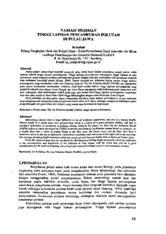 Faktor faktor meteorologi memiliki pengaruh yang cukup besar dalam penyebaran polusi udara, salah satunya adalah tinggi lapisan percampuran. Tinggi lapisan percampuran menyatakan tinggi lapisan di atas permukaan tanah tempat terjadinya percampuran polutan dengan baik dan disebabkan oleh turbulensi mekanik atau turbulensi konvektif/ tennis (Emeis, 2004). Dalam makalah ini, dilakukan kajian variasi tinggi lapisan percampuran yang merupakan salah satu keluaran software The Air Pollution Model (TAPM), dan dijalankan pada sistem workstation berbasiskan windows. Dari hasil terlihat bahwa tinggi lapisan percampuran yang terjadi di wilayah Jawa Barat, Jawa Tengah, dan Jawa Timur mempunyai nilai maksimum pada siang atau sore hari, sedangkan nilai minimumnya terjadi pada pagi dan malam hari.Tinggi lapisan percampuran maksimum rata-rata yang terjadi di Jawa Timur lebih tinggi dibandingkan dengan Jawa Barat dart Jawa Tengah. Dari penelitian ini diharapkan dapat mengetahui distribusi tinggi lapisan percampuran secara musiman yang mempengaruhi konsentrasi dan penyebaran polusi udara di P. Jawa, sehingga menjadi pertimbangan guna pengembangan tata guna lahan dan industri yang ramah atau berwawasan lingkungan
