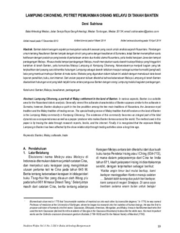 Deni Sutrisna (2014) Lampung Cikoneng, potret pemukiman orang Melayu di Tanah Banten. Naditira Widya, 8 (1): 3. pp. 19-28. ISSN 1410 - 0932
