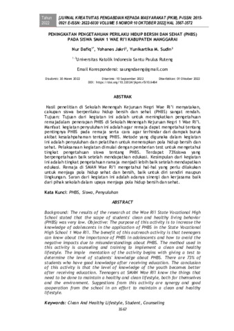 | Uncontrolled Keywords: | PHBS, Siswa, Penyuluhan |