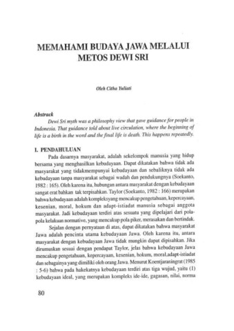 Citha Yuliati (2007) Memahami Budaya Jawa melalui metos Dewi Sri. Forum Arkeologi, 20 (1): 6. pp. 80-93. ISSN 0854-3232
